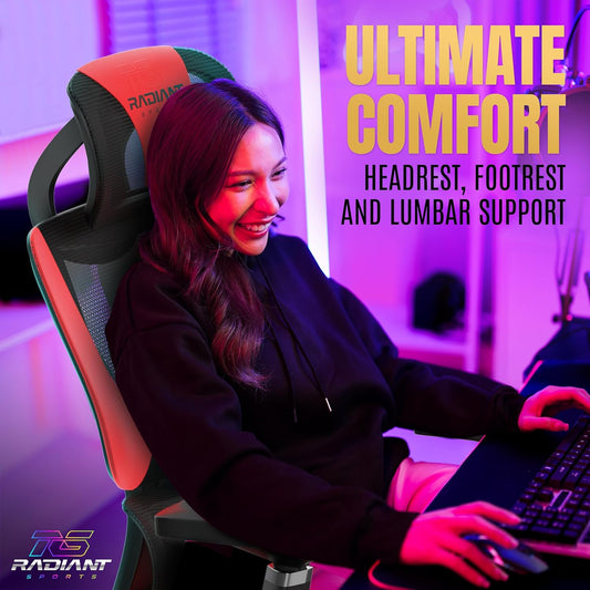 Radiant Sports Breathable Mesh Gaming Chair with Fan - Ergonomic Reclining Gaming - Breathable and Comfortable Design - Lightweight Chair for Gamer's